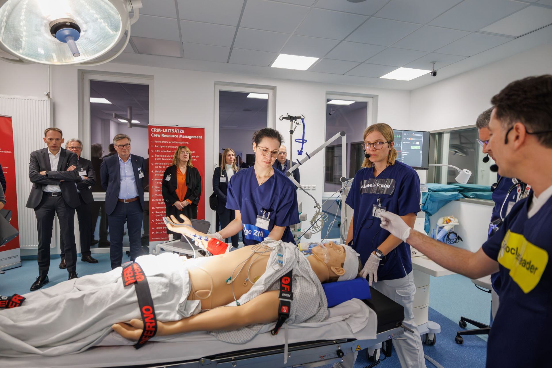 „Das medizinische Wissen auch in stressigen komplexen klinischen Situationen anzuwenden, darum geht es im Simulationstraining, das jetzt in den neuen Räumlichkeiten mit modernster Medizin-, Audio- und Videotechnik möglich ist“, beschreibt Dr. med. Kai Johanning, einer der Leiter des Skills Lab, Ärztlicher Direktor und Chefarzt der Klinik für Anästhesiologie, operative Intensivmedizin, Notfallmedizin und Schmerztherapie, die praxisnahen Übungsmöglichkeiten.