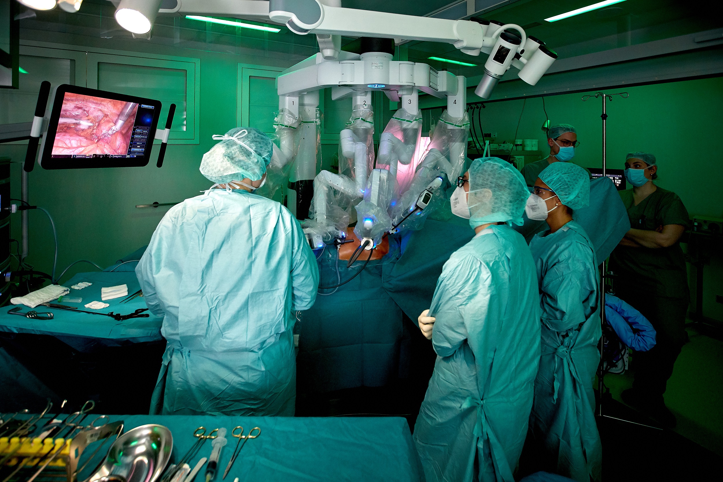 Der Da Vinci Roboter wird am Klinikum Bielefeld künftig bei thoraxchirurgischen Eingriffen sowie bei allgemein- und viszeralchirurgischen Indikationen, bei gynäkologischen Eingriffen als auch bei Eingriffen der Hals-, Nasen-, Ohrenheilkunde eingesetzt. Gleich mehrere Operateur*innen aus diesen Bereichen haben bereits die Schulung durchlaufen, die zur Anwendung des Da Vinci Roboters nötig ist.