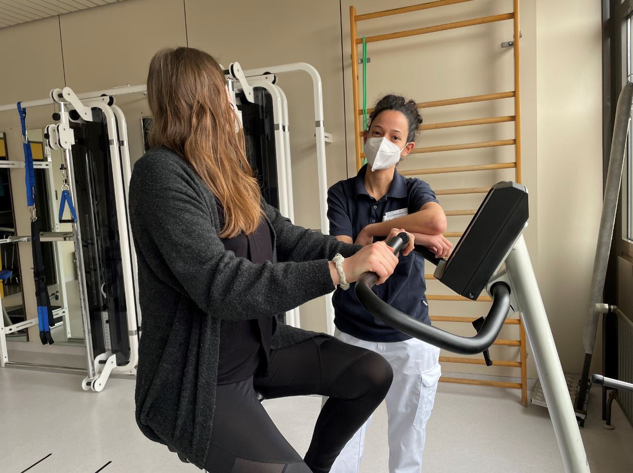 Noch bereitet ihr die ständige Erschöpfung weiter Schwierigkeiten, sie möchte aber bald wieder alltags- und arbeitsfähig sein: „Ich freue mich auf längere Spaziergänge“. Von ihrer Physiotherapeutin Roberta Fabrizio hat sie Atem-, Dehn- und Kräftigungsübungen gezeigt bekommen, die sie auch selber zuhause machen kann. Wichtig hierbei: Die Leistungsgrenzen der Patient*innen werden immer eingehalten.