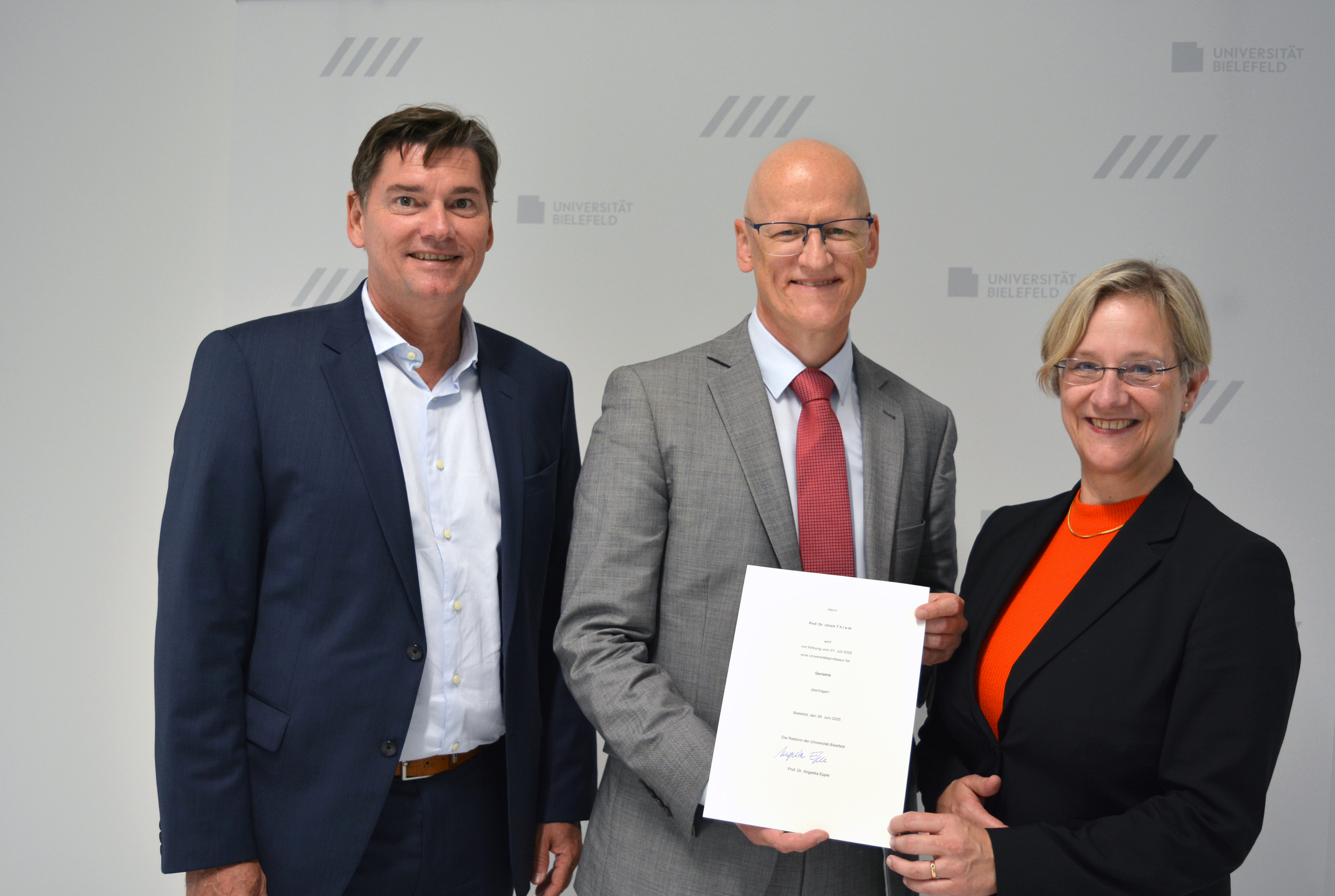 Univ.-Prof. Dr. Thiem (58) bringt eine umfangreiche wissenschaftliche und klinische Laufbahn mit: Zuletzt war er Chefarzt der Medizinisch-Geriatrischen Klinik am Albertinen-Haus in Hamburg und hatte eine Stiftungsprofessur für Geriatrie und Gerontologie am Universitätsklinikum Hamburg-Eppendorf inne. Mit Wirkung seines Amtsantritts in Bielefeld folgt er zugleich dem Ruf der Medizinischen Fakultät der Universität Bielefeld und wird Universitätsprofessor für Geriatrie.