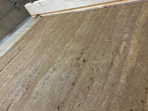 Der uralte Baustoff Lehm zieht auch in den hochmodernen Neubau am Klinikum Bielefeld-Mitte ein. Auf der Ebene E des neuen Eingangsbereichs des Klinikums wird eine Stampflehm-Wand die Besucherinnen und Besucher empfangen.