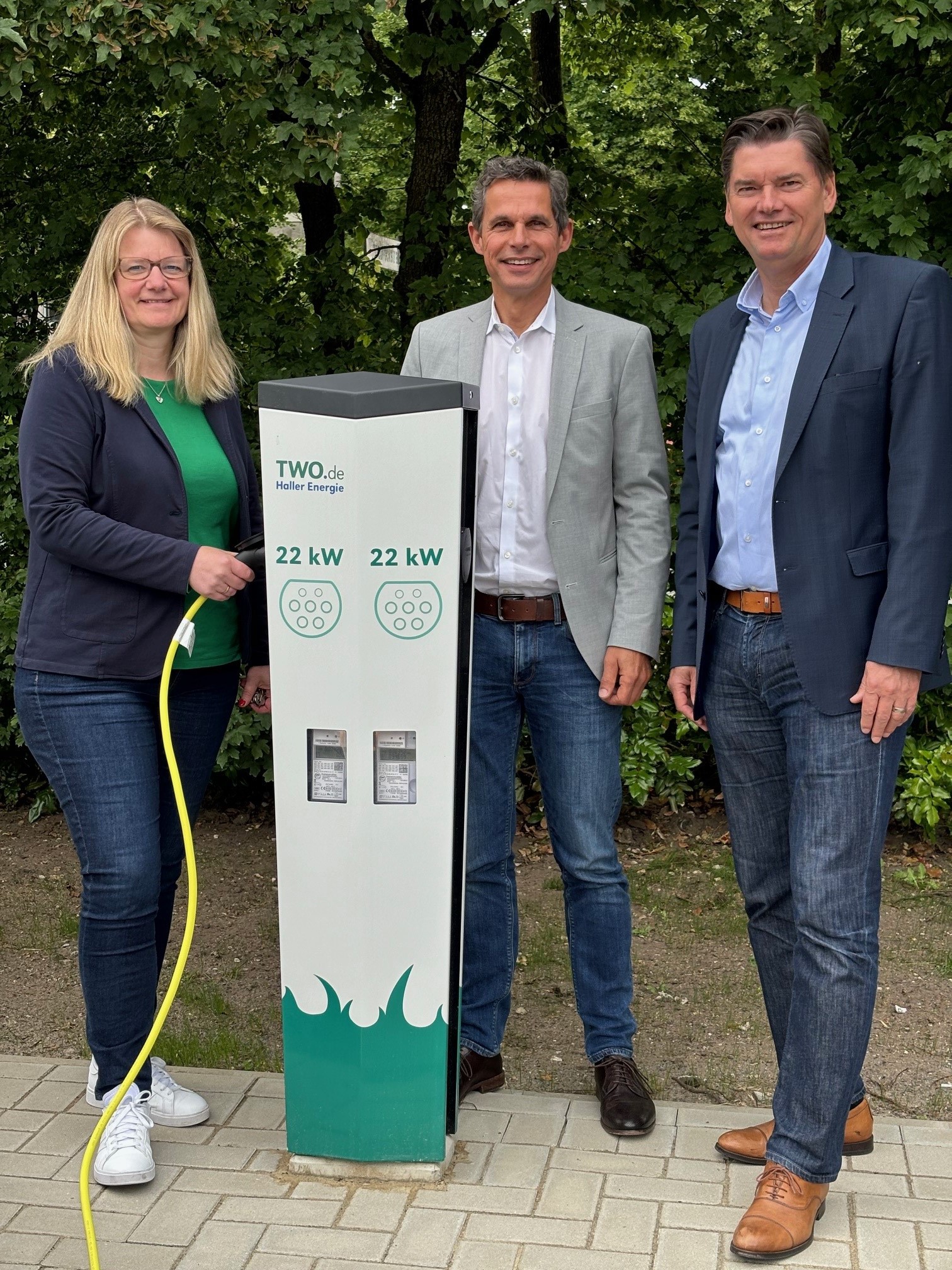 Halles Ladeinfrastruktur für E-Fahrzeuge wächst weiter: Erst kürzlich haben die T.W.O. Technische Werke Osning GmbH (TWO) ihren neuen Ladeparkplatz am Geschäftsstandort, Gartnischer Weg 127, eröffnet, nun sind auch zwei neue Ladesäulen am Klinikum (Winnebrockstraße 1) in Betrieb genommen worden. Diese wurden von der TWO gespendet und verfügen über jeweils zwei Ladepunkte mit einer Leistung von 22 kW. Derzeit gibt es insgesamt neun öffentliche Ladestandorte in Halle. „Damit reagieren wir von der TWO auf die gestiegene Nachfrage: In Halle ist die Zulassung von E- und Hybridfahrzeugen von 2023 auf 2024 um 20 Prozent gestiegen“, sagt die zuständige TWO-Mitarbeiterin Anja Sempert. Zwar liege im Vergleich zu Verbrennungsmotoren der Anteil der Elektro-Fahrzeuge in Halle noch bei 6,48 %, doch ist dieser Wert kontinuierlich gewachsen: 2018 betrug er noch 0,49 %. „Das Klinikum ist wichtig für Halle und durch die neuen Lademöglichkeiten erhält der Standort einen weiteren attraktiven Service: Besucher*innen können während ihres Aufenthalts ihr E-Fahrzeug aufladen.“ Das Parken während des Ladevorgangs ist übrigens kostenlos.