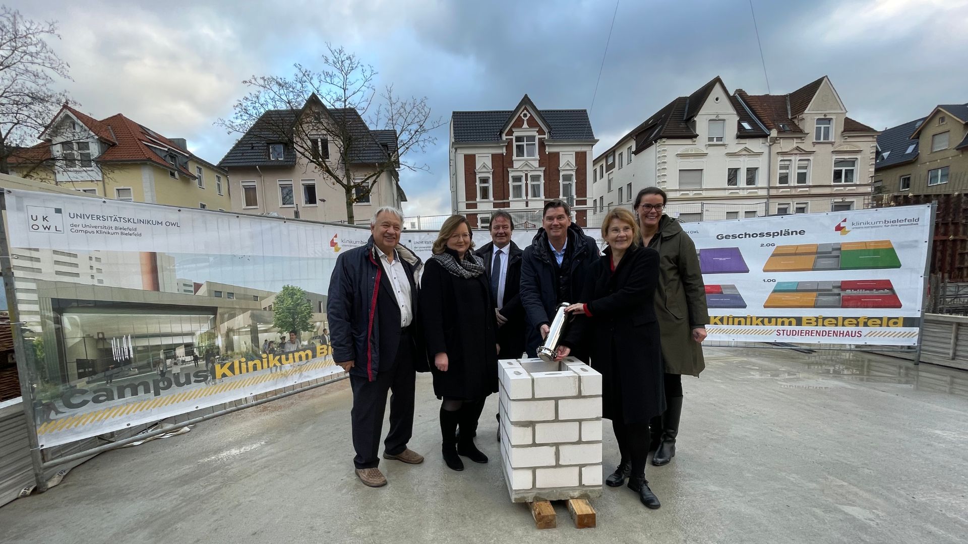 Im Studierendenhaus des Klinikums Bielefeld dreht sich alles um die Studierenden der Medizinischen Fakultät an der Universität Bielefeld. Das viergeschossige Studierendenhaus entsteht aktuell am Klinikum Bielefeld – Mitte auf der Rückseite des großen Hauptgebäudes an der Eduard-Windthorst-Straße. Die Grundsteinlegung fand am 25. November 2022 statt. Die traditionelle Grundsteinlegung dient auch als Zeitdokument, aus diesem Grund wird bei diesem Anlass gerne eine Zeitkapsel in den Grundstein eingearbeitet. Sie enthält oft tagesaktuelle Dokumente, Glücksbringer, Briefe oder andere Gegenstände. Geschäftsführer Michael Ackermann versenkte eine Zeitkapsel gefüllt mit aktuellen Ausgaben der Neuen Westfälischen und des Westfalen Blattes, einer FFP2 Maske, einem Schnelltest sowie einer Flasche hochprozentigem „Puhlmännchen“-Schnaps der Bielefelder Apotheke am Alten Markt. Hinzugefügt wurde auch eine „Survival Map“, die den Studierenden den Start am Klinikum Bielefeld erleichtert hat, ein Foto der ersten Lehrveranstaltung sowie der aktuelle Stundenplan und ein Brief des Referats für Studium und Lehre der Medizinischen Fakultät OWL.