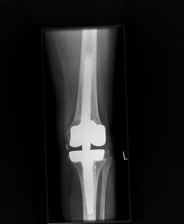 In einem zweiten stationären Aufenthalt, nachdem die Patientin wieder zu Kräften gekommen war, wurde dann im Oktober ein künstliches Kniegelenk eingesetzt. Die erhebliche Knochendefektsituation, sowohl auf der Oberschenkel als auch Unterschenkelseite, wurde durch ein spezielles Revisionsknie mit Ausgleich der knöchernen Defekte über Metallaufbauten bewerkstelligt. Die Patientin erholte sich weiter und arbeitet inzwischen wieder als Friseurin in Ihrem Salon.