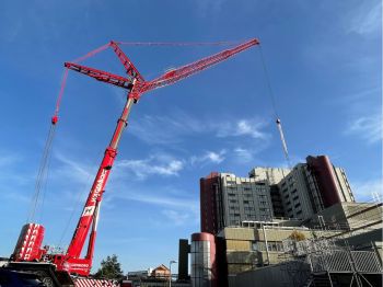 Zwei Tage dauert die Technikshow: Am 28. und 29. Oktober 2022 werden am Klinikum Bielefeld – Mitte mit Hilfe eines 700 Tonnen und ca. 85 m großen Krans insgesamt 11 Operations-Module angeliefert. Diese vormontierten und konfektionierten Container mit je 12,3 Tonnen bis 24,7 Tonnen Gewicht werden auf einen Dachteil des Klinikums Bielefeld Mitte an der Teutoburger Straße gestellt. In den kommenden Monaten werden die Container zu zwei vollwertigen 1A Operations-Sälen mit entsprechendem hochwertigen OP Licht sowie umweltfreundlicher OP Lüftungstechnik ausgebaut und erhalten einen sterilen Zugang zum bereits bestehenden Zentral-OP im Klinikum Mitte. Diese Maßnahme ist erforderlich, um die Operations-Kapazitäten im Klinikum Bielefeld Mitte dauerhaft auszubauen.