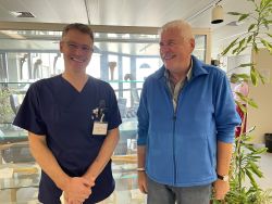 Vor der Operation hätte er keine Angst, so Kerz: „Ich habe schon schlimmere Operationen hinter mir. Zudem war ich bereits 2019 Patient in der Orthopädie am Klinikum Bielefeld, hier habe ich, ebenfalls mit der Unterstützung des MAKO©-Robotersystems, ein neues Knie bekommen. Mit Dr. Barkhausen habe ich einen sehr kompetenten Operateur, den ich bereits 2019 kennenlernen durfte. Die Auswahl des Arztes ist Vertrauenssache, und da ich damals sehr zufrieden war, komme ich nun wieder.“