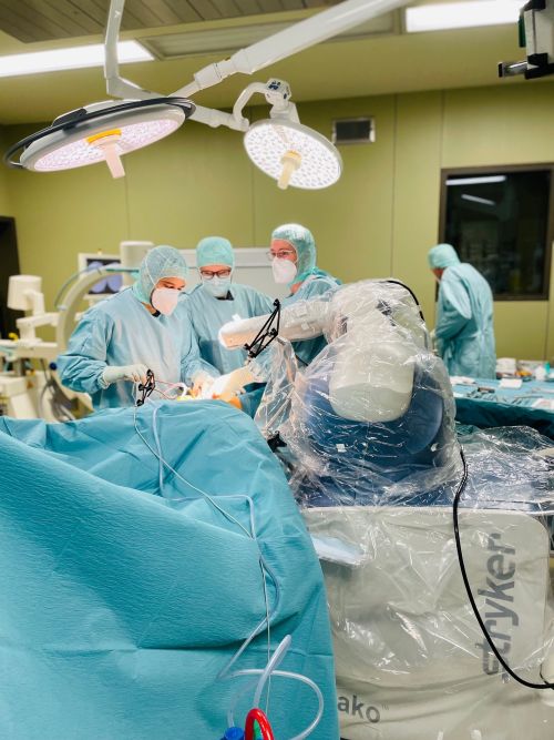 „Herr Kerz kann sich in seinem aktuellen Zustand nur unter Schmerzen die Schuhe binden oder Socken anziehen, Bücken ist mehr als problematisch. Als die Schmerzen deutlich zunahmen, kam er zu uns“, so Dr. Barkhausen über seinen Patienten. „Wir haben den MAKO©-Roboterarm in der Vergangenheit nur für die Knieendoprothetik eingesetzt. In diesem Jahr testen wir nun den Ersatz des Hüftgelenks mit dem Roboter, um dies in Zukunft dauerhaft in unser Repertoire zu integrieren“. Dr. Barkhausen ist seit März 2019 Dozent für roboterassistierte Chirurgie und hat bereits international weit über 100 Chirurg*innen im Umgang mit dem System geschult und zertifiziert. Seit 2021 ist das Klinikum Bielefeld ein Hospitationszentrum für roboterassistierte Chirurgie.