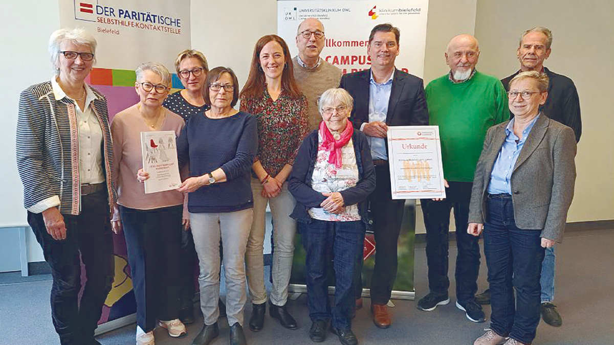 Patient*innen mit chronischen Erkrankungen und ihre Angehörigen müssen oftmals ihr Leben lang mit den Folgen ihrer Erkrankung leben. In Selbsthilfegruppen finden sie Verständnis Gleichbetroffener sowie Informationen und Erfahrungsaustausch. Sie treffen auf ein soziales Netz, das auch in schwierigen Lebenslagen hält. Selbsthilfefreundliche Gesundheitseinrichtungen fördern daher aktiv den Kontakt zwischen Patient*innen und der Selbsthilfe. Dies hat sich auch das Klinikum Bielefeld zum Ziel gemacht und wurde für die erfolgreiche Umsetzung nun zum vierten Mal durch das Netzwerk „Selbsthilfefreundlichkeit und Patientenorientierung im Gesundheitswesen“ als selbsthilfefreundlich ausgezeichnet. Die Auszeichnung wird an Gesundheitseinrichtungen vergeben, die nachgewiesen haben, dass sie verschiedene Kriterien der Selbsthilfefreundlichkeit erfüllen und verabredete Maßnahmen umsetzen.