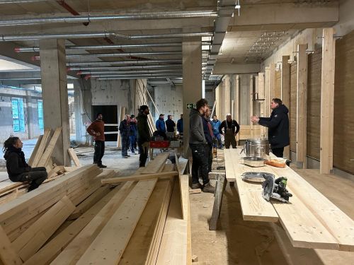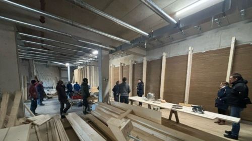 Meilenstein der Handwerkskunst: Stampflehm-Wand im neuen Notfall- und Intensivmedizinischen Zentrums (NIZ) fertiggestellt