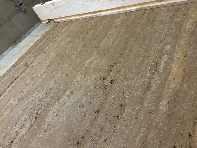 In einer eigens konstruierten Verschalung wird Lehm aus der Region aufgetürmte und anschließend verdichtet Wenn die Wand in rund sechs Wochen vollständig getrocknet ist, wird eine Naturwachs-Verblendung aufgebracht, um das Material zu schützen. Die 15 cm dicke Wand wirkt sich später positiv auf das Raumklima aus und wird mit ihrer lebendigen Optik zum Verweilen einladen. Auch der Andachtsraum im Notfall- und Intensivmedizinischen Zentrum wird so gestaltet.